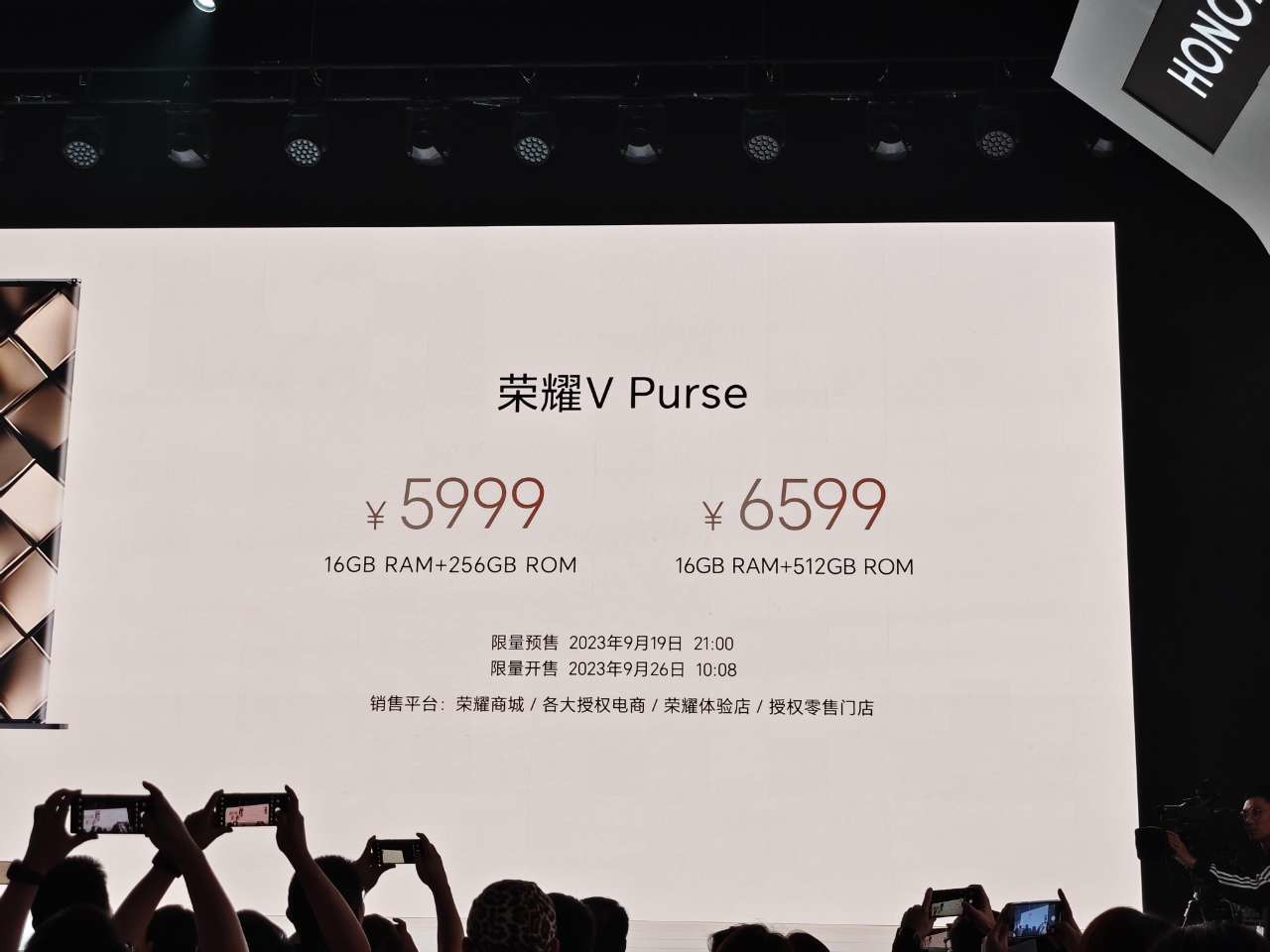 In terms of price, the 16+256 edition of Honor V Purse phone is priced at 5,999 yuan, and the 16+512 edition is priced at 6,599 yuan, limited pre-sale at 9 PM tonight, and will be available on September 26.