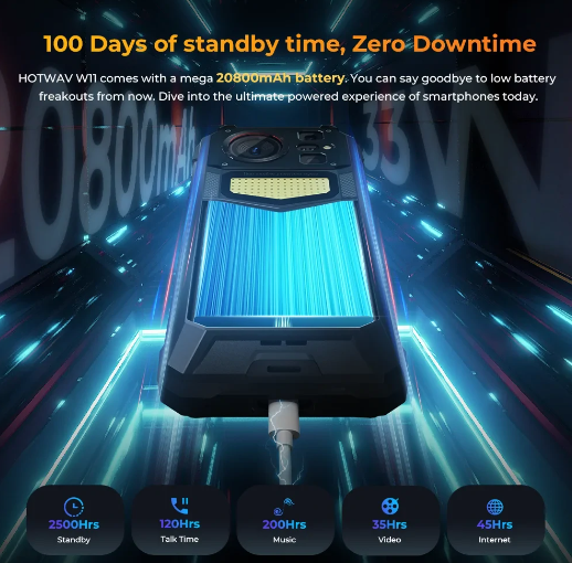 One of the key features of the HOTWAV W11 is its impressive 20800mAh battery capacity, which ensures long-lasting power for extended outdoor adventures. Whether you’re hiking in the mountains, camping in the wilderness, or exploring off-the-grid locations, the HOTWAV W11 has you covered with reliable battery life that keeps you connected and powered up when you need it most.