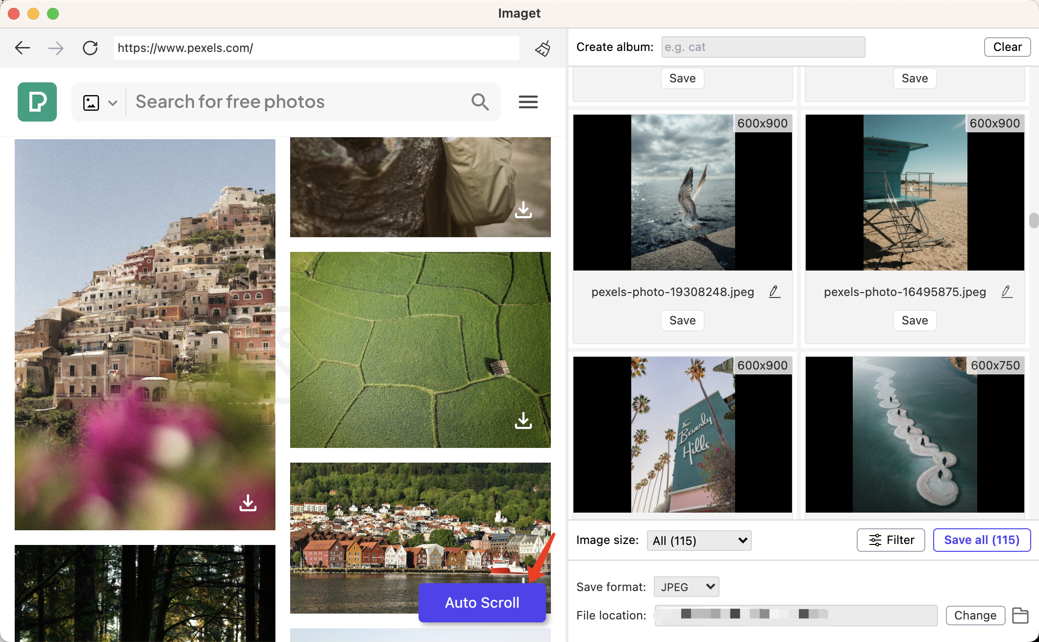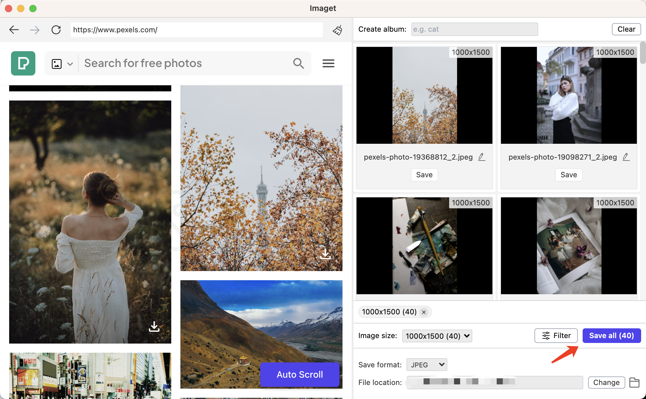 Step 3: Click the “Auto Scroll” button, and Imaget will automatically scroll to load all wallpapers on this page.