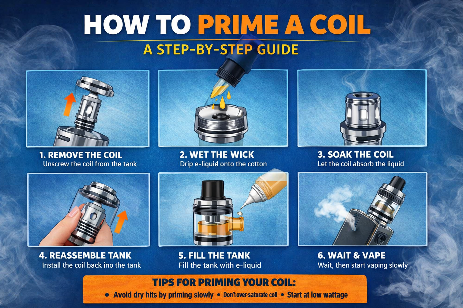 Priming a coil is one of the most important steps in setting up your vape for a smooth and flavorful experience. Whether you’re a beginner or an experienced vaper, understanding how to prime your coil properly can prevent dry hits, burnt flavors, and premature coil damage. In this article, we’ll walk you through the step-by-step process of priming a coil, ensuring that your vape setup works efficiently and enhances your overall experience.