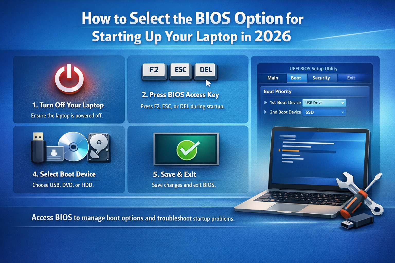 Selecting the BIOS or UEFI options to start up your laptop in 2026 is a straightforward process that can be done with just a few steps. Whether you’re changing the boot order, troubleshooting, or configuring hardware settings, understanding how to navigate BIOS/UEFI is essential for maintaining and customizing your system.