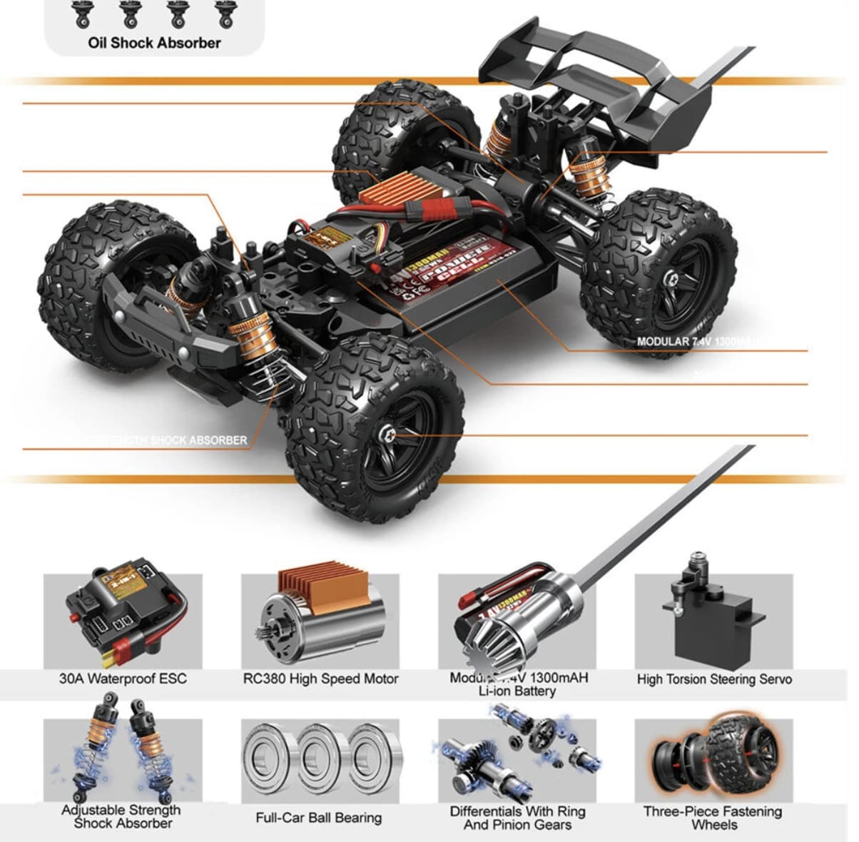 While the TSUNAMI is built to impress with its high-speed capabilities, it is also designed with accessibility in mind. Whether you’re an experienced RC car enthusiast or just starting out, the controls are intuitive, and the car’s performance is easily manageable. The 2.4 GHz transmitter ensures minimal interference from other devices, allowing you to race with friends without worrying about connectivity issues.