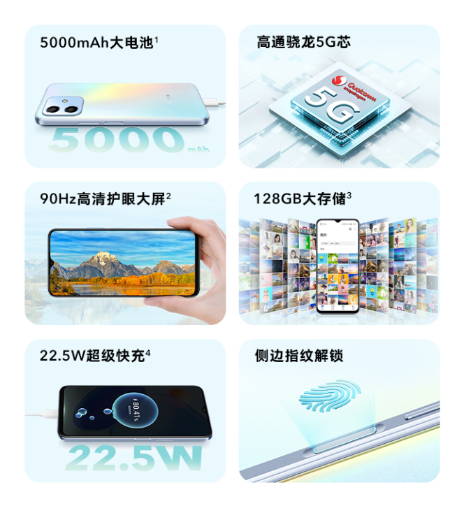 In terms of configuration, Honor Play6C is equipped with Qualcomm SM4350Pro 5G processor. iGeekphone has not found the specific model of this processor, but as a comparison, the model of Qualcomm Snapdragon 480 processor is SM4350. Officially, it’s an octa-core processor (2 x A76 x 2.2ghz +6 x A55 x 1.9ghz) powered by an Adreno 619 GPU. It also has a 5,000mah battery, which officials say can last up to 19 hours. At the same time, the new machine also supports 22.5W super fast charging, charging 10 minutes to complete three games.