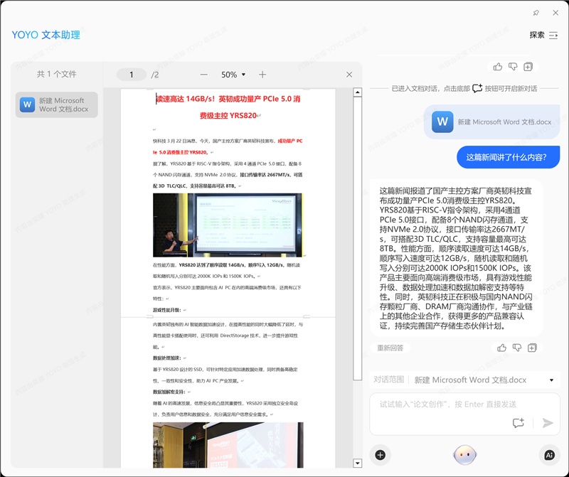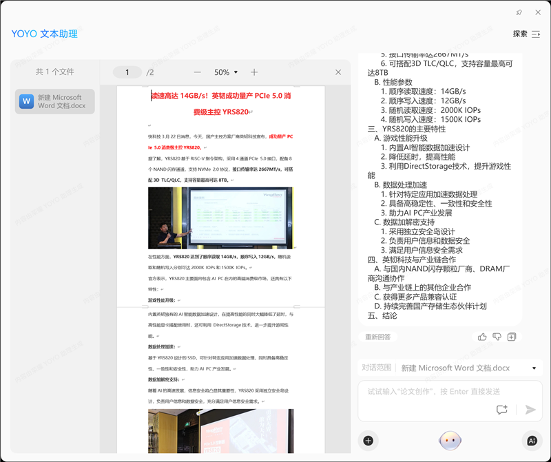 To validate its effectiveness, we conducted tests on an article. With YOYO AI’s assistance, tasks such as generating article summaries or creating outlines become remarkably efficient, with improved accuracy, ensuring reliable support for users’ work.