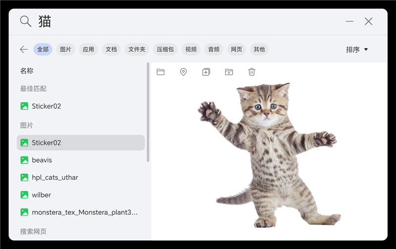 Its intelligent search is notably efficient, utilizing AI fusion and deep learning algorithms for OCR recognition of picture text and semantic analysis. For instance, simply entering the keyword “cat” prompts accurate search results, even without relevant file names or descriptions, making it highly convenient.