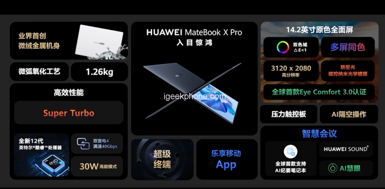 Huawei released a new generation of MateBook X Pro notebook, equipped with a 3K 90Hz screen, equipped with a 12th generation Core processor, and supports Super Turbo to optimize performance.