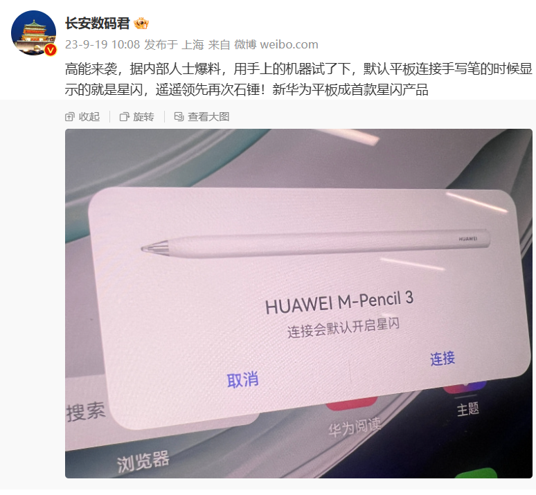 The poster also shows the Huawei MatePad Pro 13.2-inch tablet with a fringe screen design and support for the M-Pencil stylus. According to blogger @Changan Digital code Jun broke the news, the new M-Pencil 3 stylus also supports star flash connection.