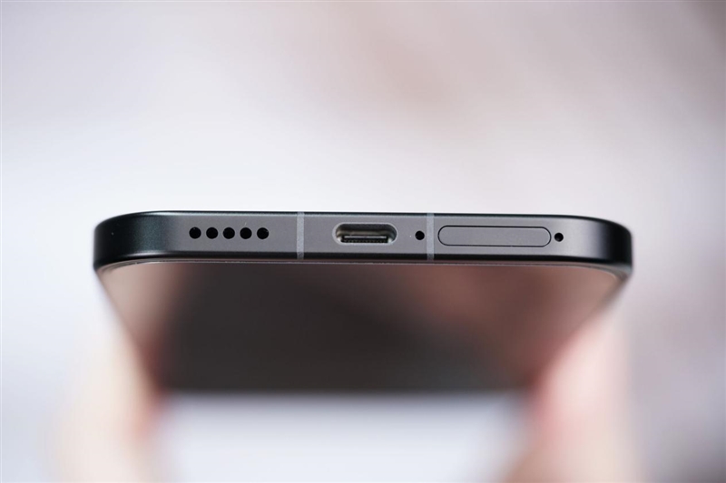 - Bottom edge: Speaker grille, microphone, USB Type-C charging port, and SIM card tray