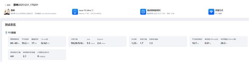 Running Genshin Impact at maximum graphics settings showcases HarmonyOS 6’s intelligent thermal management. The system automatically activates frame interpolation technology at 60 FPS to optimize both heat generation and battery life, making the following metrics representative rather than absolute.