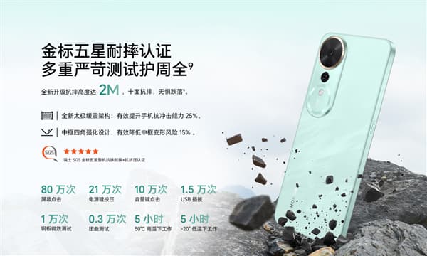 The Honor Play 70 Plus has obtained the Gold Label Five-star Drop Resistance Certification, with a drop resistance height of up to 2 meters. It features a brand-new Taiji cushioning architecture, effectively enhancing the phone’s impact resistance by 25%. The four corners of the middle frame are reinforced, reducing the risk of middle frame deformation by 15%.