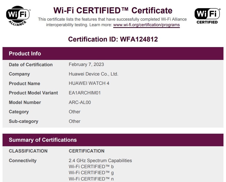 Huawei’s new smartwatches, the Watch 4 and the Watch 4 Pro, are already in the WiFi Alliance’s verified database and are expected to be unveiled at the P60 event later this month.