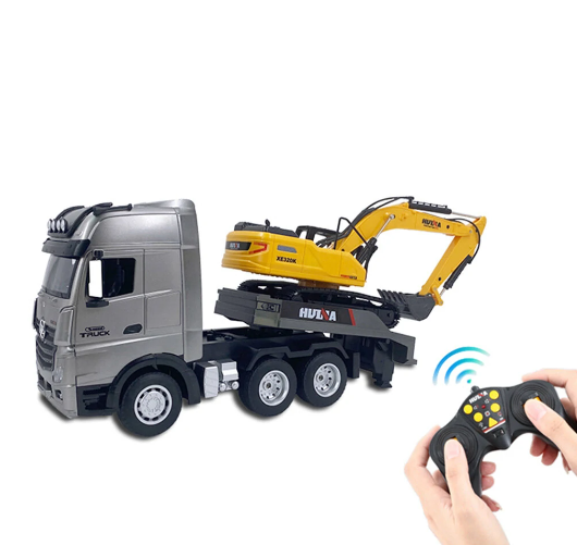 The 2.4G remote control system of the HuiNa Toys 1522 RC Excavator Truck and Flatbed Trailer set allows you to control the vehicles with precision and accuracy, ensuring smooth and seamless operation. With nine channels of control, including forward, backward, left, right, digging, lifting, and more, you have full control over the excavator truck and flatbed trailer, allowing you to perform a wide range of construction tasks and maneuvers. The remote control is easy to use and responsive, making it suitable for both beginners and experienced RC enthusiasts.
