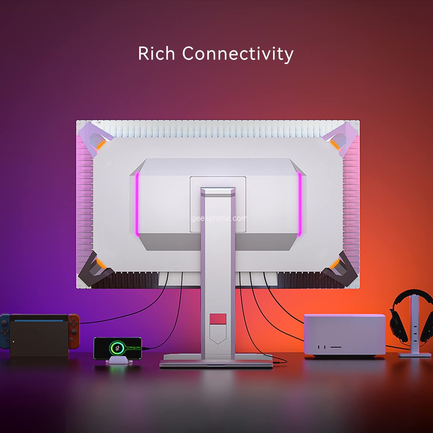 Additionally, the monitor comes with built-in 4Ω5Wx2 stereo speakers, providing an enhanced audio experience. Connectivity options include USB-C (with up to 90W Power Delivery), DisplayPort 1.4 (supporting 160Hz), and two HDMI (v2.1) ports, enabling seamless compatibility with a wide range of devices such as desktop gaming PCs, laptops, tablets, phones, mini PCs, the Nintendo Switch, PlayStation 5, and Xbox gaming consoles. The monitor also supports a high refresh rate of 144Hz, making it suitable for gaming purposes.