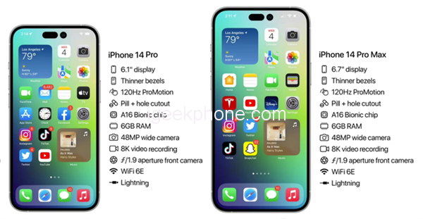 In terms of screen parameters, the iPhone 14 Pro and iPhone 14 Pro Max use 6.1-inch and 6.7-inch screens respectively and are also equipped with a 120Hz ProMotion adaptive high refresh screen.