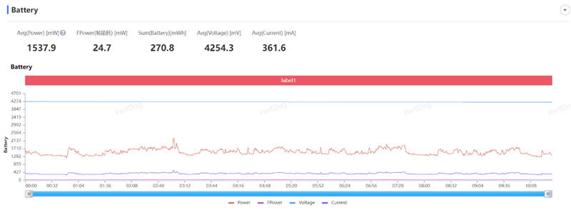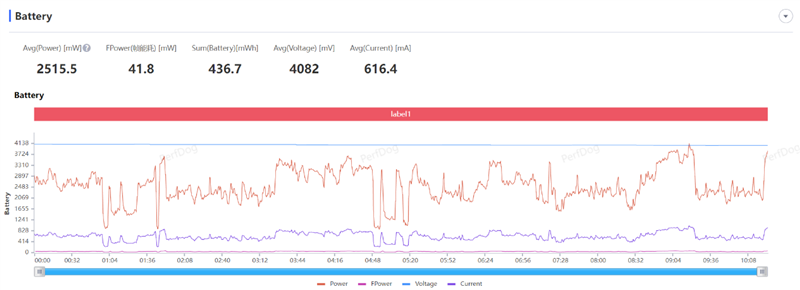 Then we checked the power consumption during the game. The average power consumption was 5.03W, and the frame energy consumption was 83.6mW. Faced with this kind of mobile game that takes both CPU and GPU, the power consumption is still relatively high.