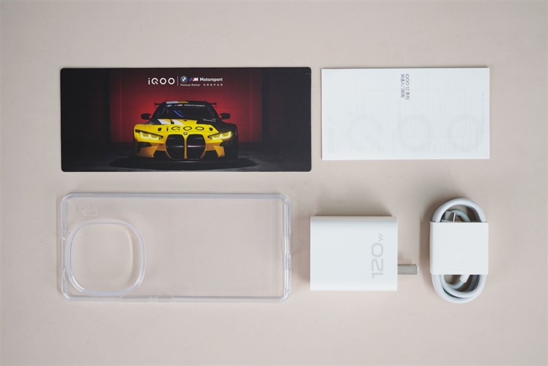 In addition to the iQOO 12, the package also comes with a 120W super fast charging set, a transparent silicone phone case, a quick start guide, and a promotional page for track co-branded partners.