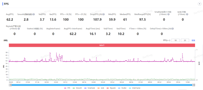 With the highest image quality + 60 frames mode turned on and output at the native 60 frame rate, we ran the map while fighting monsters. After 10 minutes of testing, the average frame rate stabilized at 60.2FPS, and the output was directly full frame. Although there were There are slight fluctuations, but they will not affect the overall game screen performance. The average fluctuation is only 1.3.