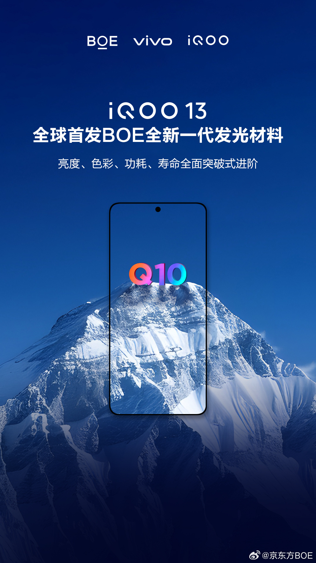 Igeekphone on October 16 news, iQOO continued to warm up the new iQOO 13 machine today, saying that the machine uses the 2K Q10 Everest screen jointly customized with BOE.