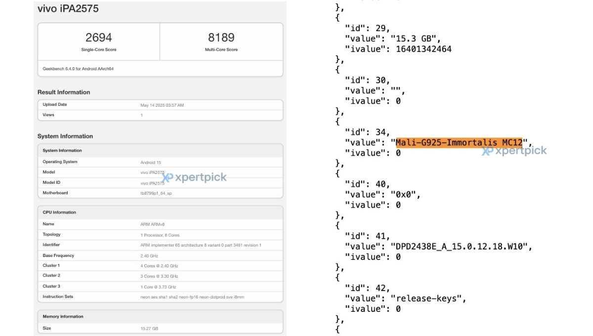 Igeekphone News, May 14th: Technology media xpertpick published a blog post today (May 14th), reporting that the iQOO Pad5 Pro tablet has appeared in the GeekBench benchmark database. The single-core score of version 6.4.0 is 2694 points and the multi-core score is 8189 points.