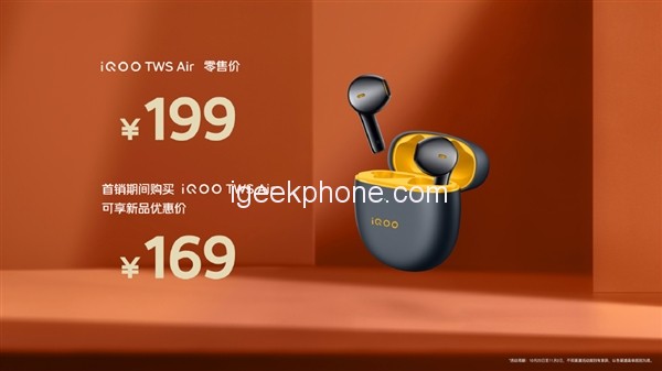 iQOO released its first gaming true wireless headset, iQOO TWS Air, which is priced at 199 yuan, and the first sale price is 169 yuan. It only costs 119 yuan to purchase with iQOO Neo 7.