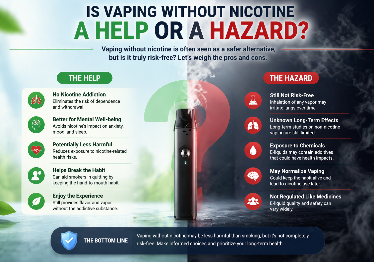 In this article, we’ll explore the potential benefits and risks of vaping without nicotine and examine whether it’s truly a help or a hazard.