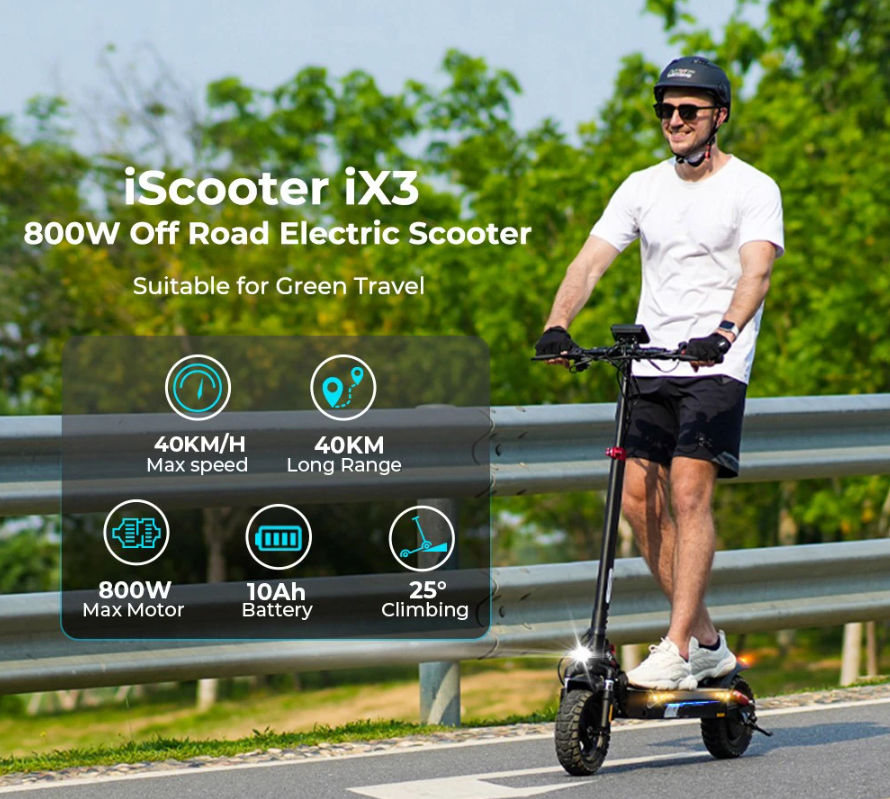 Overall, the iScooter iX3 Folding Electric Scooter is a reliable and versatile option for urban commuters and adventure enthusiasts alike. With its powerful motor, off-road tires, and convenient features, it offers a smooth and enjoyable riding experience, whether you’re navigating city streets or exploring off the beaten path. And with its foldable design and adjustable handlebar height, it’s easy to take with you wherever you go. So why wait? Get your hands on the iX3 today and experience the freedom of electric scootering for yourself.