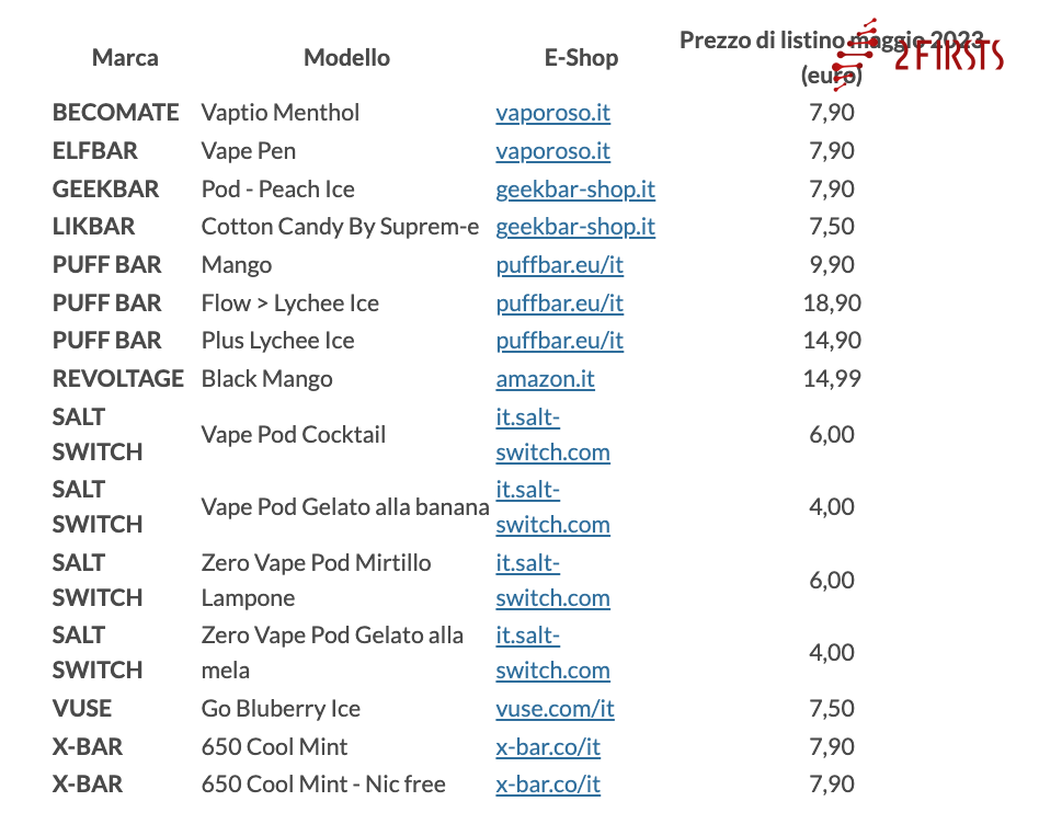 The remaining 10 (e-cigarettes from PUFF BAR, REVOLTAGE, SALT SWITCH, X-BAR) are not registered with the Customs and Monopoly Office and cannot be sold in Italy, but they can still be purchased on the official e-cigarette shop and e-commerce platforms without any age verification. This includes the Amazon platform, where Altroconsumo writes: