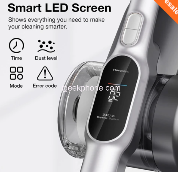 Equipped with a 245AW digital brushless motor, the JIMMY H10 Flex offers impressive suction power. It can effectively pick up dust, debris, and pet hair from carpets, upholstery, stairs, and other surfaces. The vacuum cleaner’s multi-layer cyclone filtration system ensures efficient separation of dust and allergens, providing cleaner air in your home.