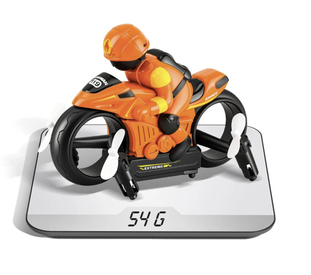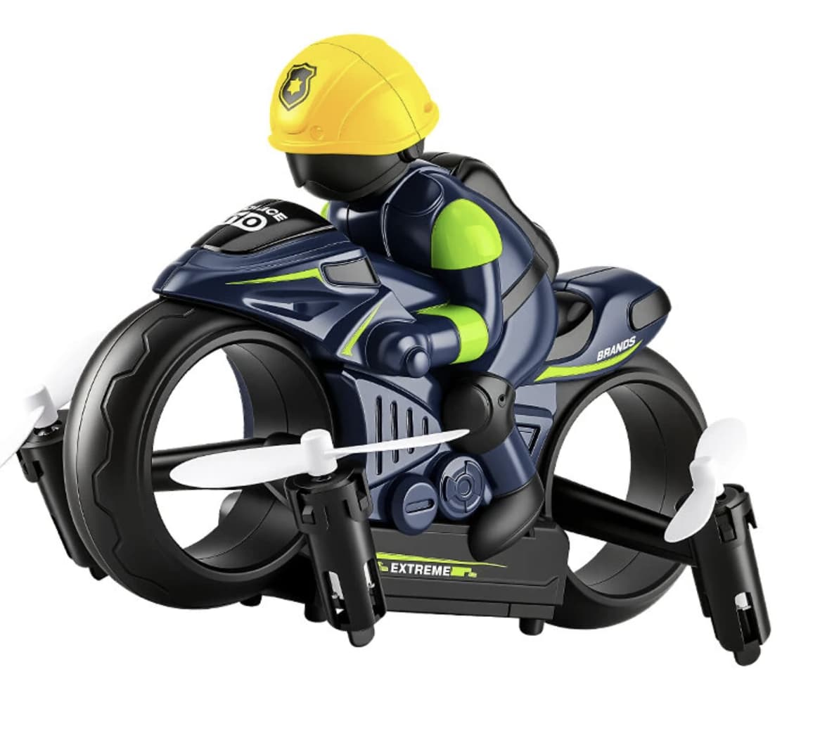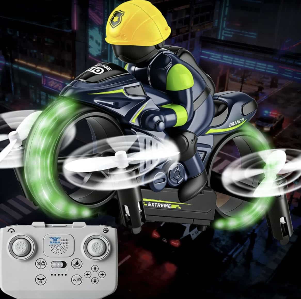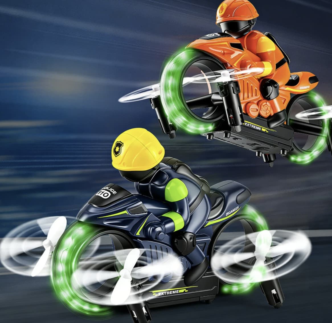 Designed for kids and hobbyists alike, the JJRC H141 combines flying drone technology with the thrill of a land-based motorcycle, making it a truly versatile and engaging toy. Packed with advanced features like altitude hold, headless mode, and LED lights, this 2-IN-1 RC drone promises hours of entertainment and a fresh take on remote-controlled flying vehicles.