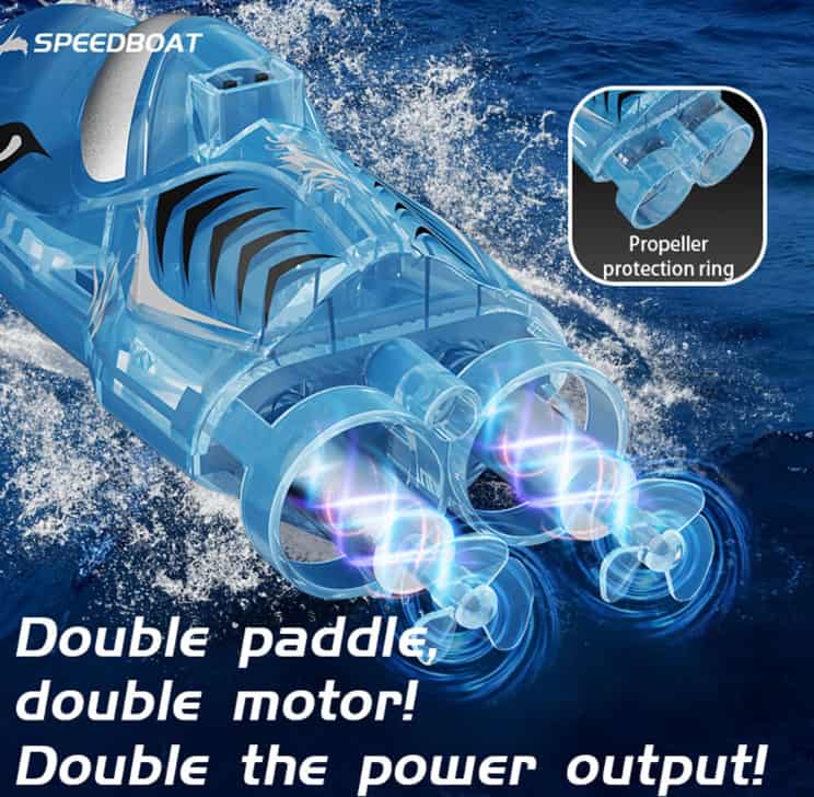 The S21’s standout feature! Press a button on the 2.4GHz remote, and watch it perform an impressive full barrel roll on the water’s surface – a guaranteed crowd-pleaser.