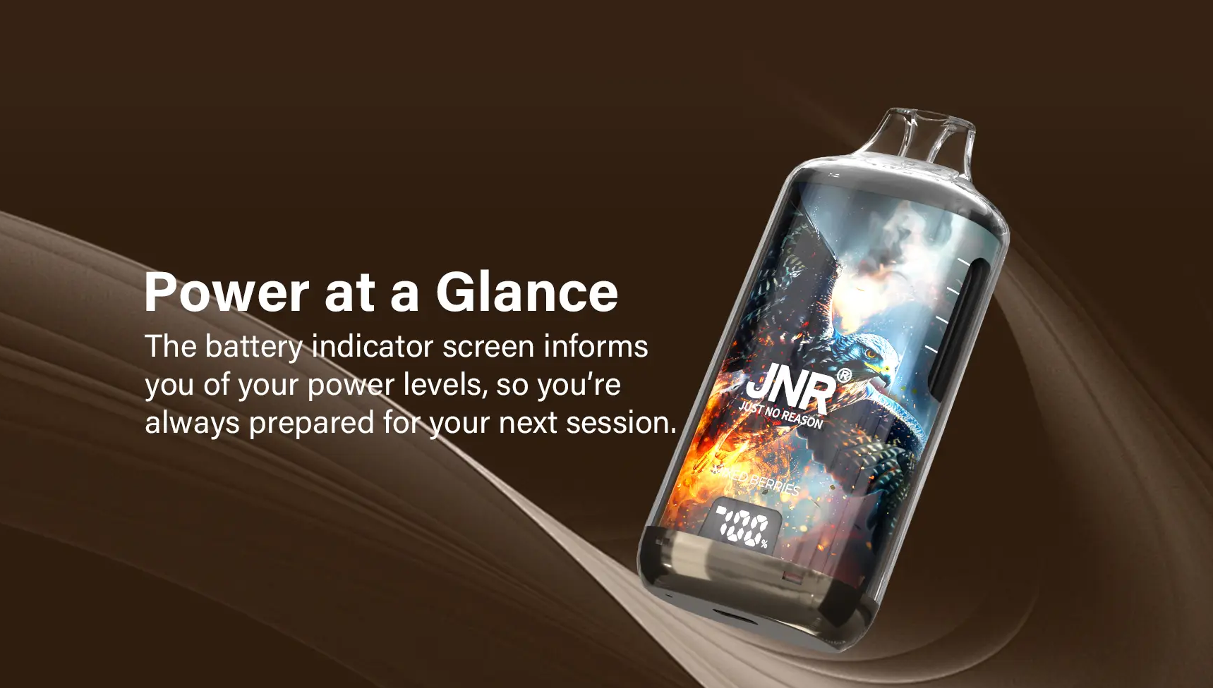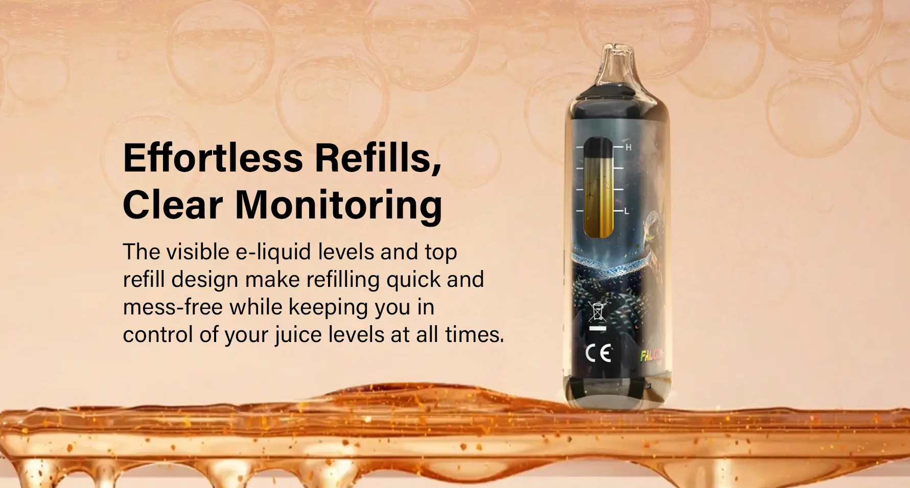 • Simple, elegant visuals with visible e-liquid