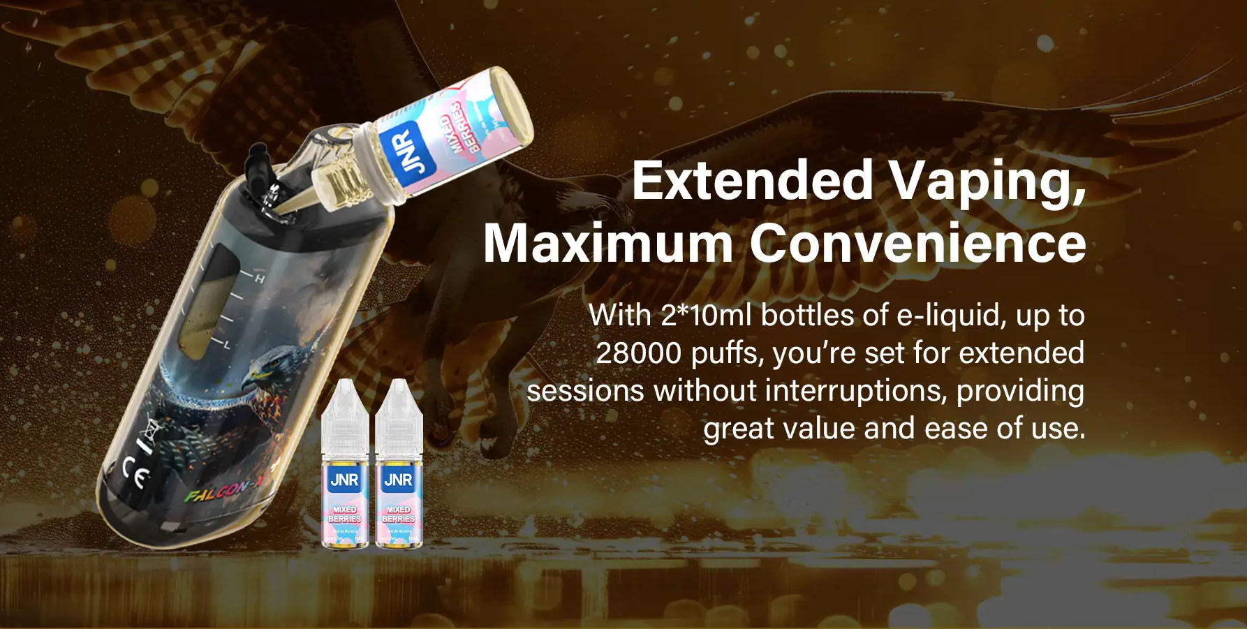 Both the JNR Falcon X and JNR Falcon X⁺ deliver exceptional performance, long-lasting battery life, and a massive 28,000-puff capacity—making them strong contenders in the high-end rechargeable puff category.