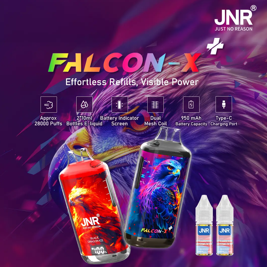 The JNR PhoneVape is a bold, tech-forward disposable that blurs the line between vaping and a smartphone. The Falcon-X⁺, on the other hand, is a refillable powerhouse built for vapers who want precision, control, and long-lasting performance. Both are impressive, but for very different reasons.