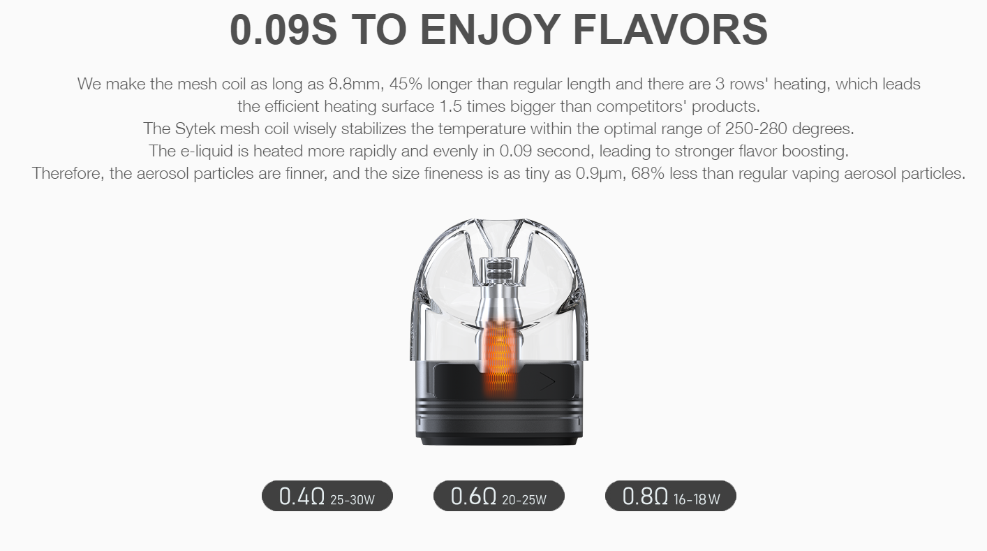 The Keystone Ark Luxury Pod is packed with advanced features. It boasts a Sytek mesh coil that heats the e-liquid rapidly and evenly within 0.09 seconds, enhancing flavor delivery. The device offers a maximum power output of 30W and allows users to adjust the power range from 5W to 30W. The airflow adjustment provides both MTL (Mouth to Lung) and RDL (Restricted Direct Lung) vaping experiences. An OLED screen displays real-time information such as battery level, power output, puff counts, and resistance. The pod has a 2ml capacity, side-fill design, and incorporates a leak-proof system with multilayered silicone rings and seals. With a 900mAh battery, it supports 2A fast charging, reducing downtime significantly.