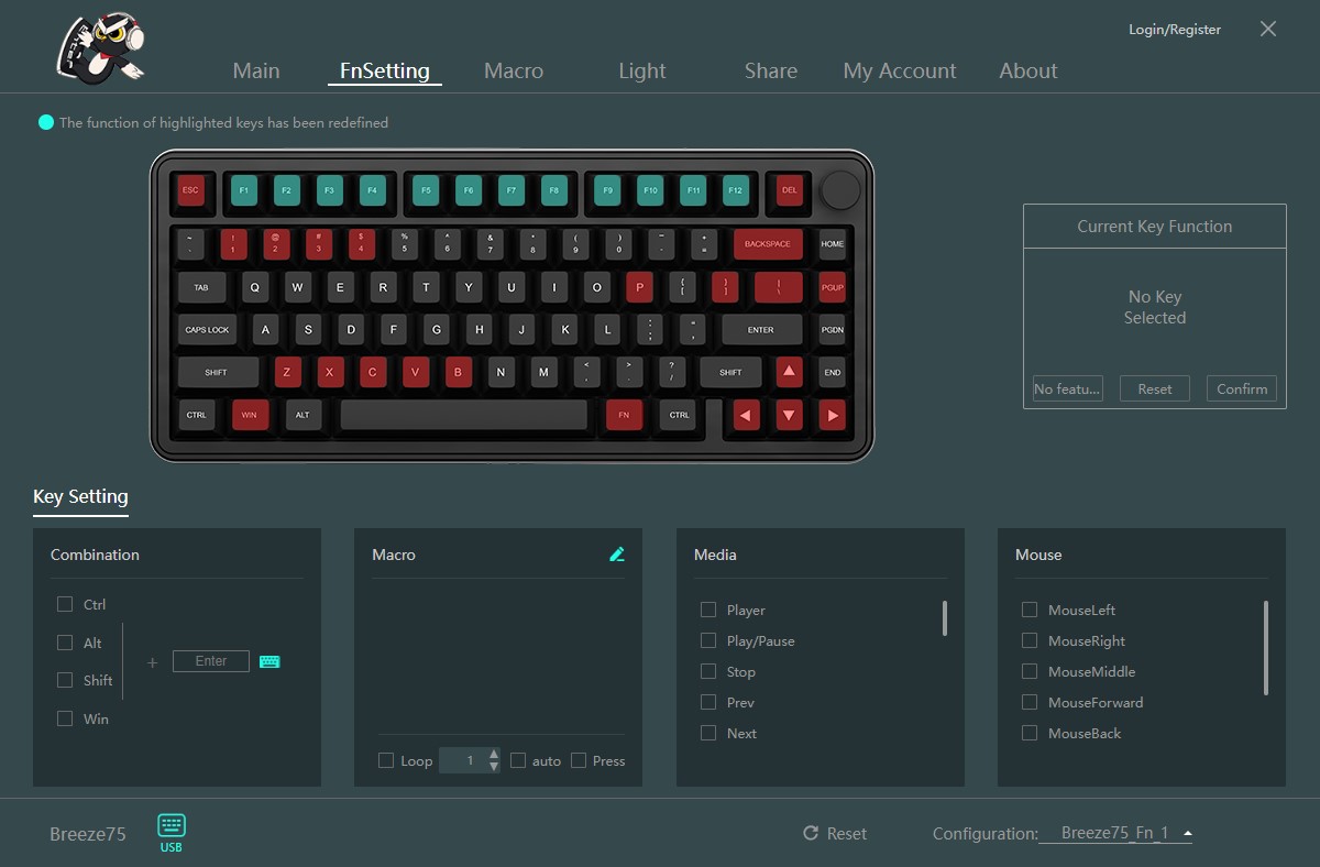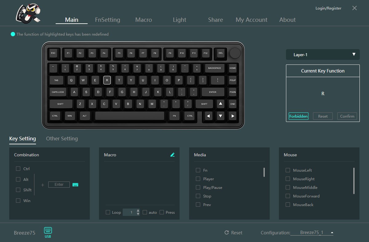 The Kiiboom Breeze 75 comes with software that lets you fully customize the keyboard to your liking. You can rebind keys, set up macros, and tweak the RGB settings. The software is intuitive, with a clean interface that lets you change your settings easily. It also has cloud support, which means you can save your profiles and transfer them between keyboards—perfect for those who own multiple Kiiboom boards.
