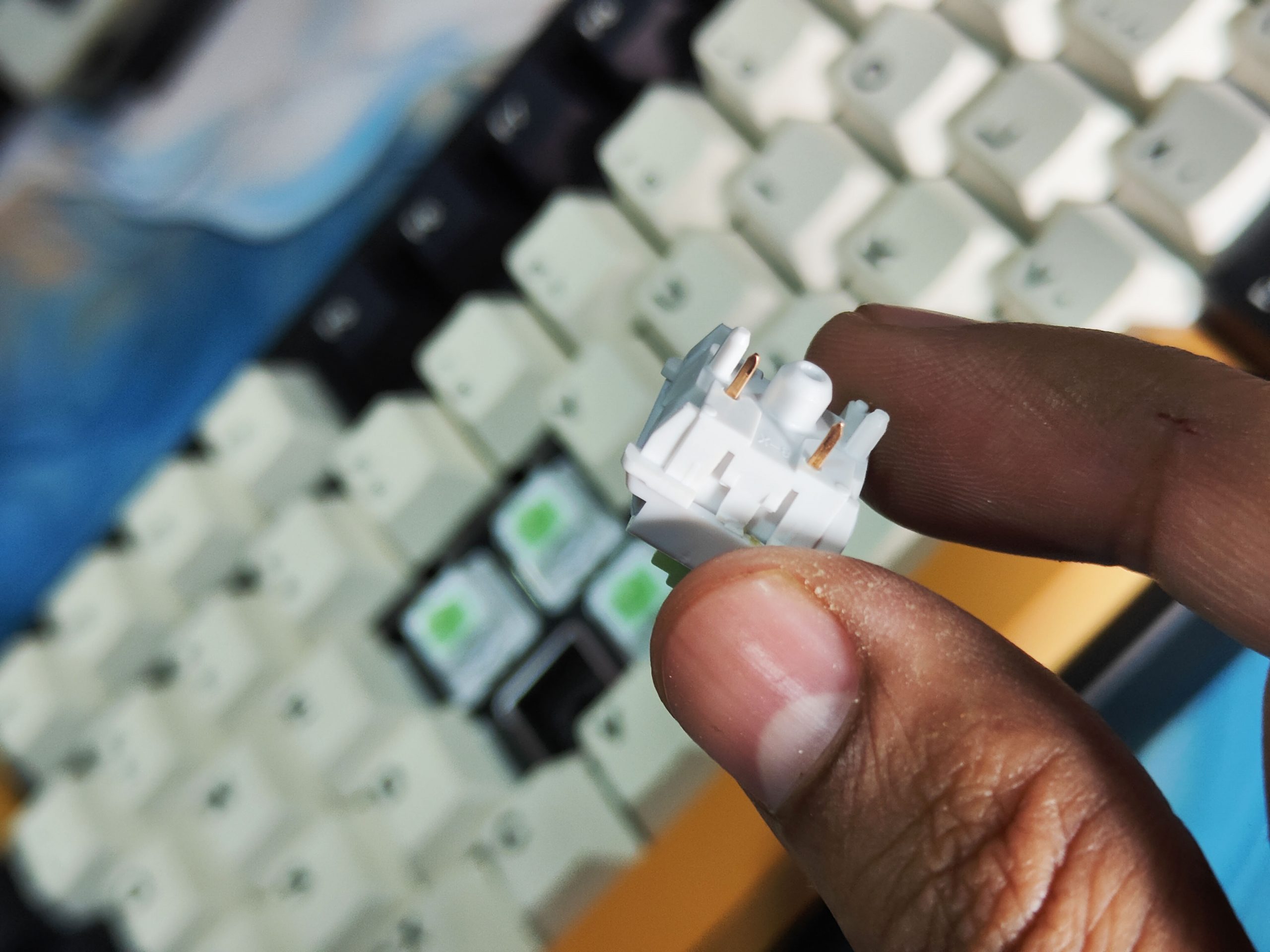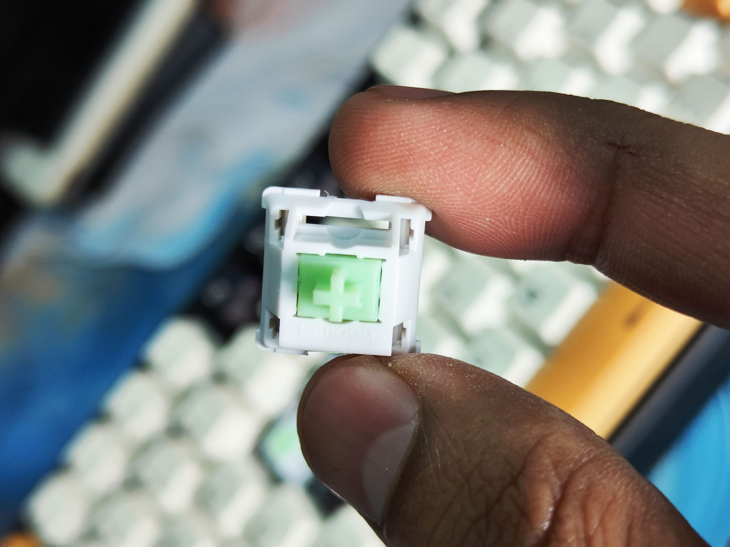 Now let’s discuss the switches. The Kiiboom Moonshadow V2 comes with KiiBOOM’s Flick Switches: linear-style switches designed to provide a buttery/smooth acoustic experience. These provide a pleasing compromise of subdued softness and that already iconic “thocky” sound, while sitting on a typing experience that still feels frictionless. However, despite thei45 gf5gf actuation force rating, they feel much lighter in everyday use due to their pillow-y conformity. The 2.0mm pre-travel distance is moderate enough to work for gaming marathons as well as office productivity.