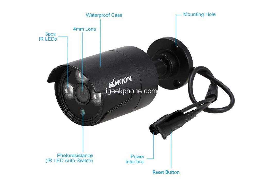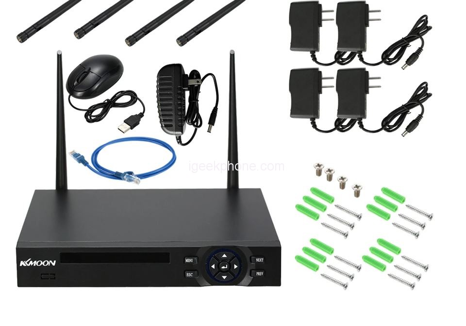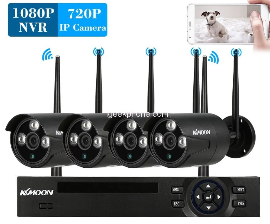 The KKmoon 4CH 1080P HD WiFi NVR Kit Consist of 4CH 1080P HD WiFi NVR + 4pcs 1.0MP Wireless WiFi Waterproof Outdoor Bullet IP Camera.. It tends to be utilized as a security discovery of public places, stops and rides or your home.