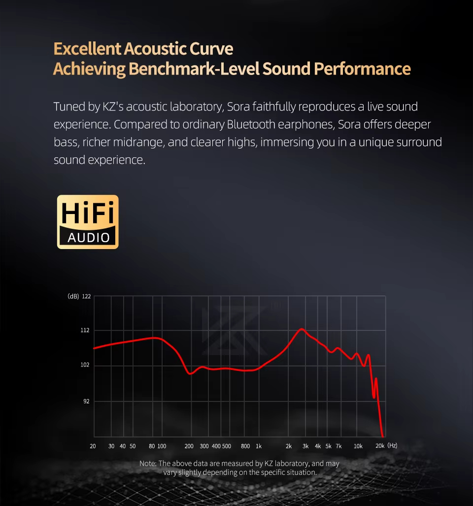 At the heart of the KZ Sora lies Bluetooth 5.4, offering rock-solid connectivity, an extended 15m range, and energy efficiency that outshines older versions. This ensures seamless pairing with devices and minimal dropouts, even in busy environments. Audio quality is where the Sora truly shines: the Super Linear Wideband Internal Magnetic Driver delivers crisp highs, detailed mids, and a soundstage rivaling wired counterparts. Paired with an Advanced DSP Module, the earbuds reproduce music with striking clarity and depth.