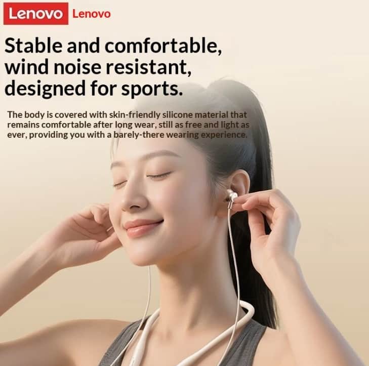 The neckband design of the Lenovo E500 provides both comfort and stability during intense activities. The soft, flexible neckband rests comfortably around your neck, allowing you to wear the earphones for hours without discomfort. The lightweight design ensures that the earphones stay securely in place, making them perfect for sports or other high-movement activities.
