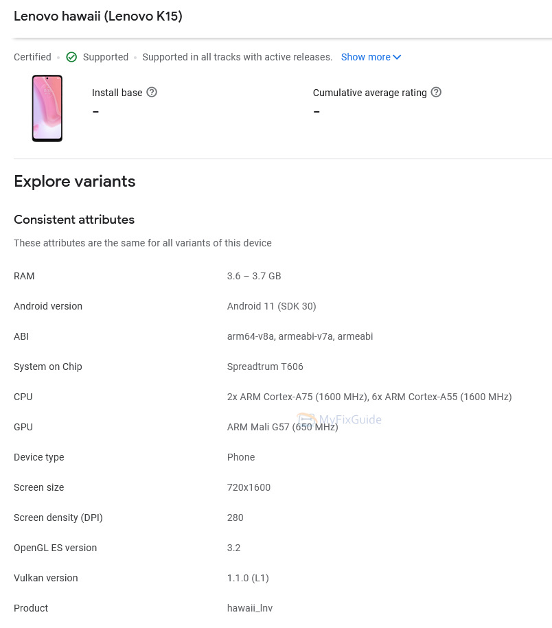 Lenovo launched the K14 series of entry-level phones in March 2022, all of which are powered by Unigroup. According to myfixguide, the successor to the K15 has already appeared on Google Play Console.