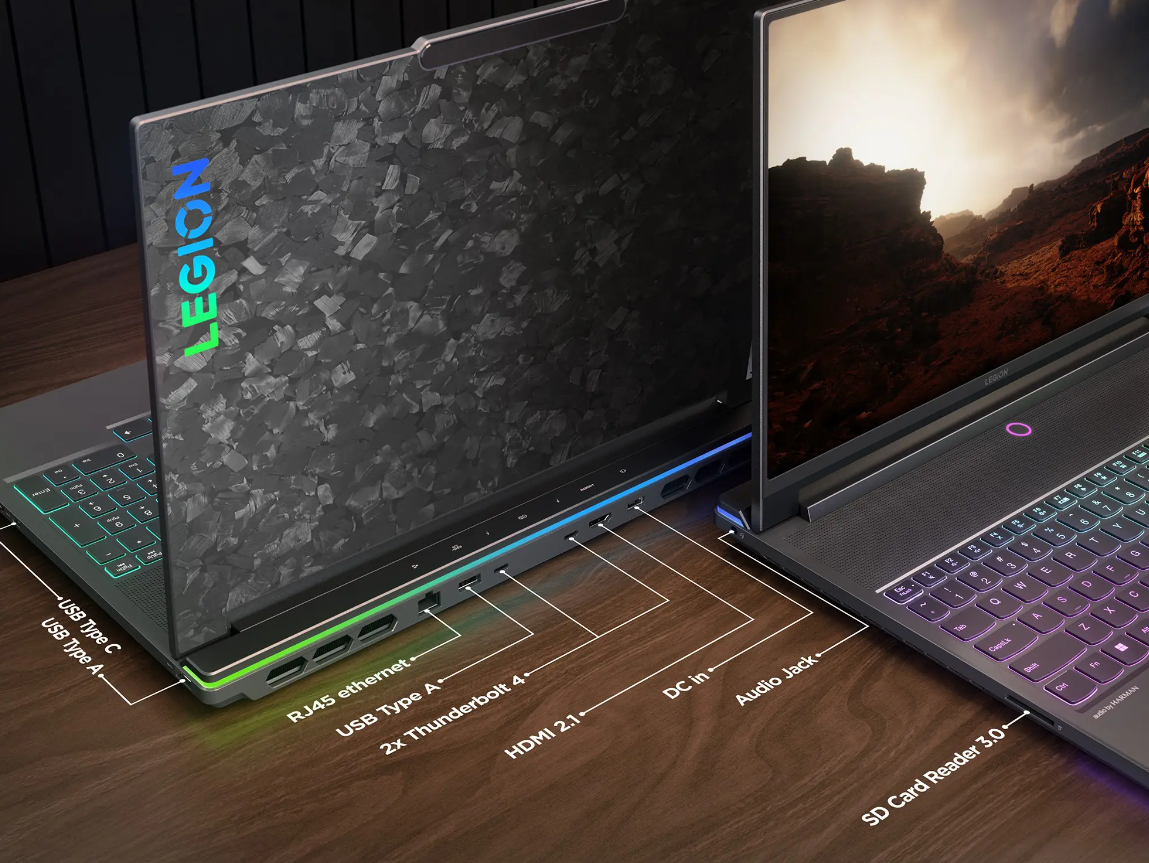 Among the non-Pro models, the Lenovo Legion 7i and 5i are up to the Core i9 14900HX and RTX 4070, both with 16-inch displays, up to 32GB of memory, and 1TB SSD.