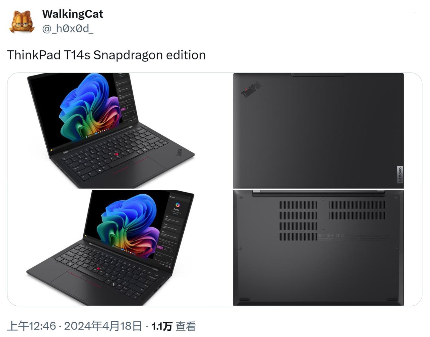 Igeekphone news on April 18, following the revelation of Lenovo YOGA Slim 7 14 2024 Snapdragon version, blogger @_h0x0d_ released the ThinkPad T14s Gen 6 Snapdragon version of the laptop rendering, equipped with Snapdragon X Elite chip.