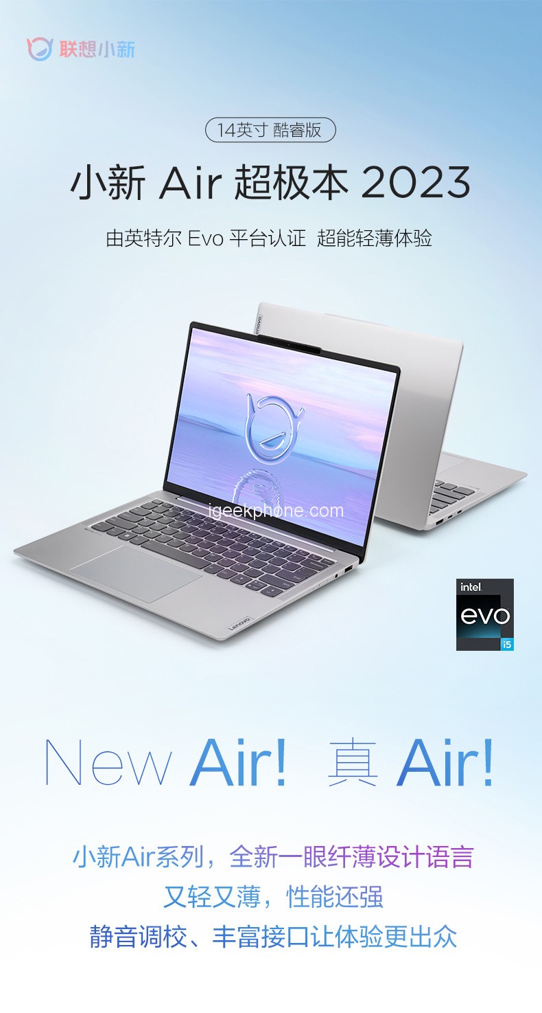 Lenovo officially announced a brand new laptop today, the Lenovo Xiaoxin Air 14 2023 Core Edition, which is currently available in major malls, starting at 5,699 yuan, and pre-sale at 20:00 tonight.