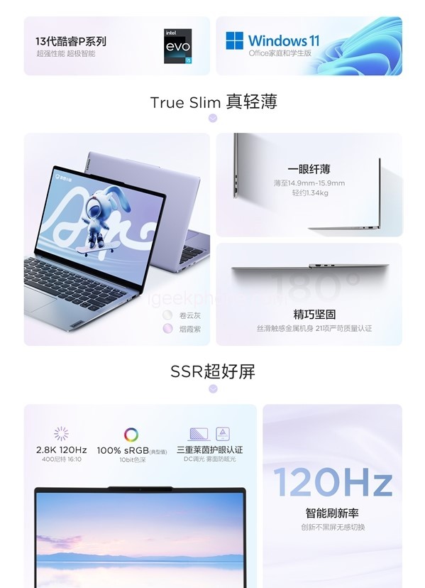 The Xiaoxin Air14 Ultrabook 2023 has a complete set of interfaces, including full-speed dual Thunderbolt 4, a 3.5mm audio port, USB-A 3.2 Gen1, and HDMI 2.0. It comes pre-installed with genuine Win11+Office, making it an ideal choice for professionals and students who need a robust and reliable device for work and play.