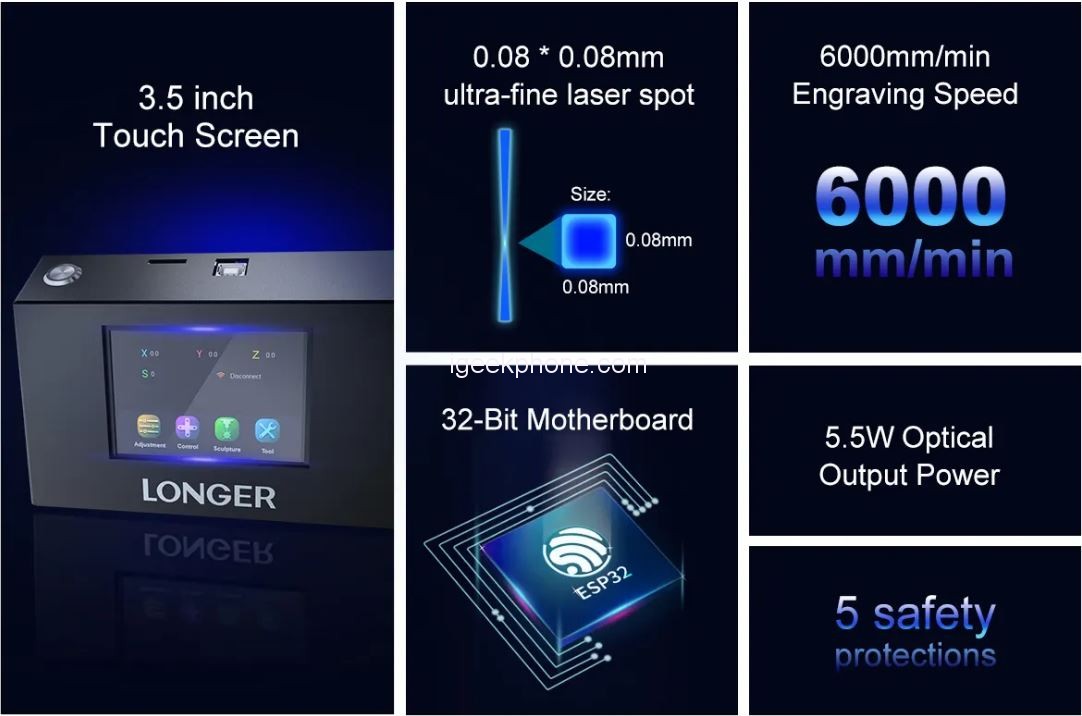 If you’re in the market for a powerful and versatile laser engraver, the LONGER Ray 5 is an excellent choice. This machine boasts an impressive 20W laser, which allows you to quickly and easily engrave a wide variety of materials, including wood, plastic, leather, and more. Additionally, the Ray 5 comes equipped with a 3.5-inch touchscreen display, which makes it easy to control the engraving process and adjust settings on the fly. What’s more, you can now purchase the LONGER Ray 5 from CAFAGO at the lowest price available, making it an even more attractive option for hobbyists and professionals alike. So whether you’re looking to add a personal touch to your home decor, create custom gifts for friends and family, or launch a small business, the Ray 5 laser engraver is a powerful and reliable tool that won’t let you down.