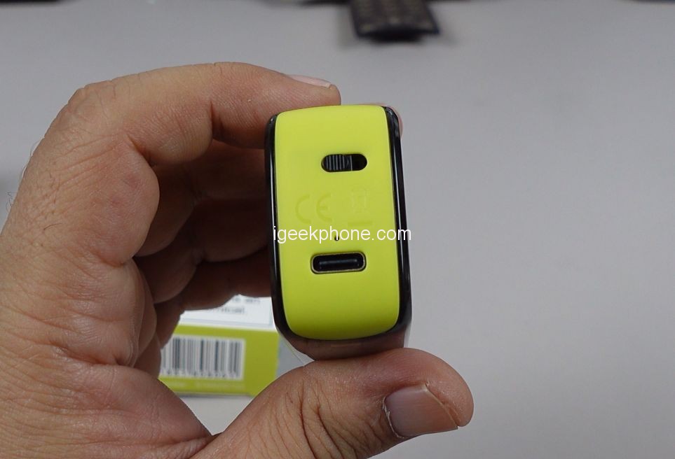 At the bottom we can see, the adjustable air flow, the fast-charging port, and the charge indicator LED.