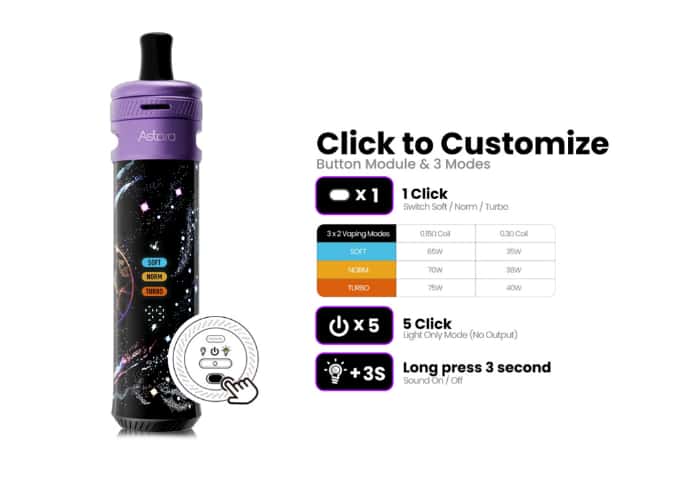 Whether you’re looking for something simple or a more customized vaping experience, the Astara offers something for everyone.