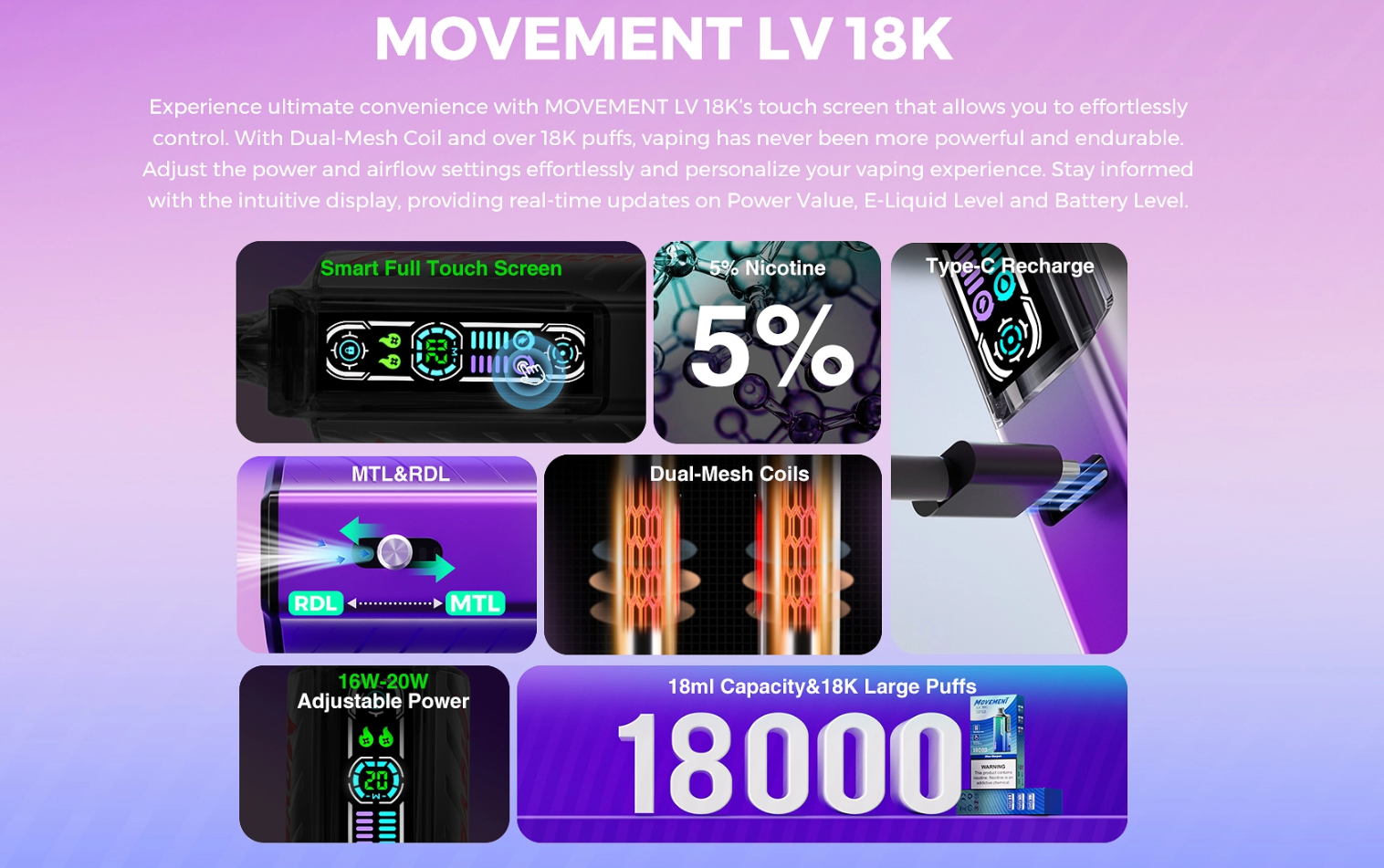 - The Movement LV 18K, with its luxurious design, gold-plated coils, and advanced safety features, is a great choice for those who prioritize style and a refined vaping experience.