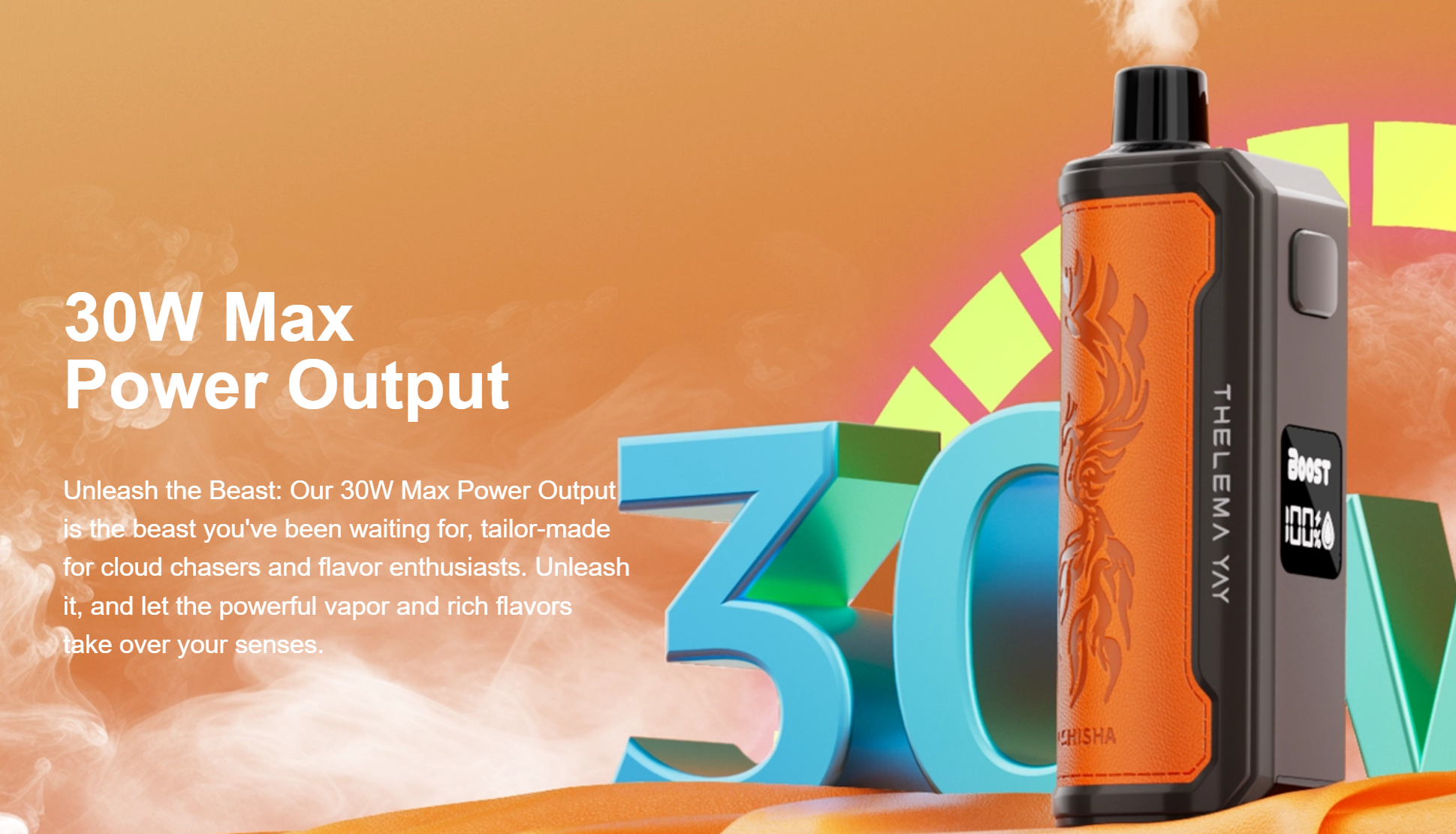 - Boost Mode: Delivers 30W for a more intense, deep DTL sensation with up to 20,000 puffs.