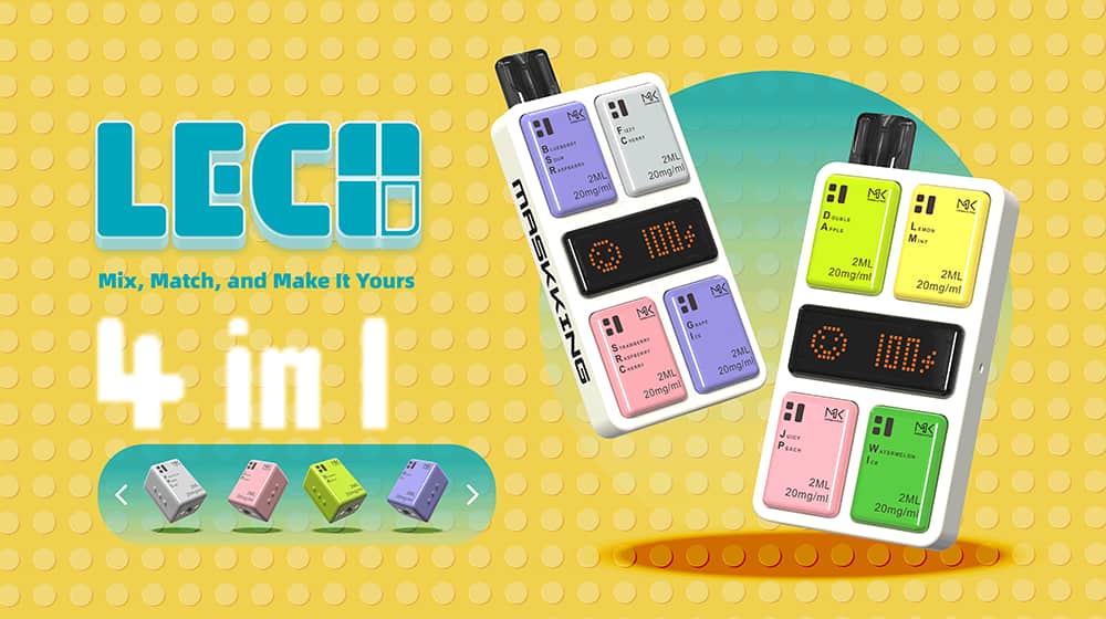 The Maskking Leco replacement pod kit takes the modular vape concept further with TPD compliance built in. Its fully detachable design allows users to assemble four 2mL pods (up to 2400 puffs) together with interchangeable add-on components. This DIY-Freely system empowers users to build, switch, and personalize their setup. It gives users the freedom to customize within a fully TPD-compliant format, turning regulation into creativity.